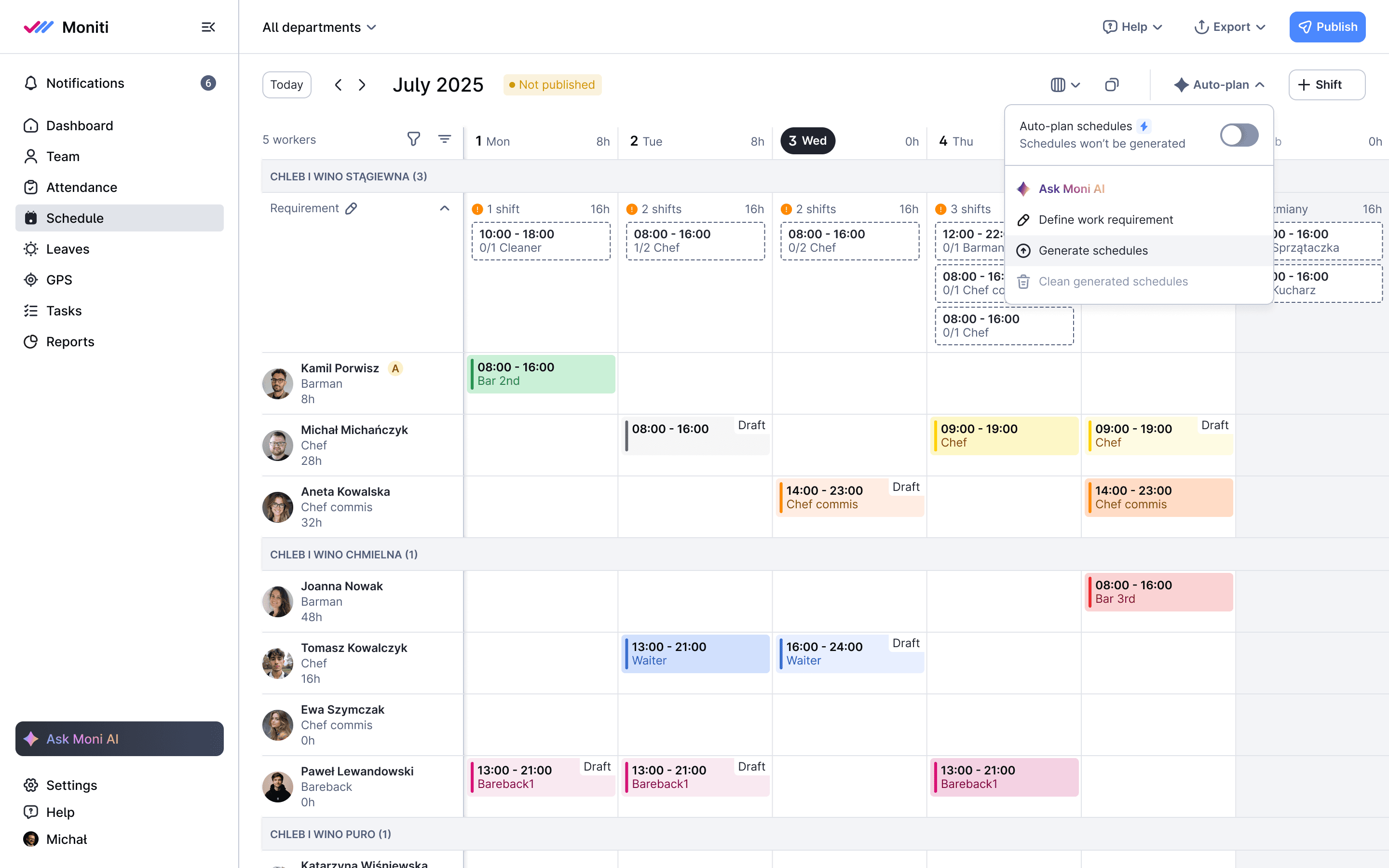 Designed Moniti’s AI assistant to automate workforce scheduling.