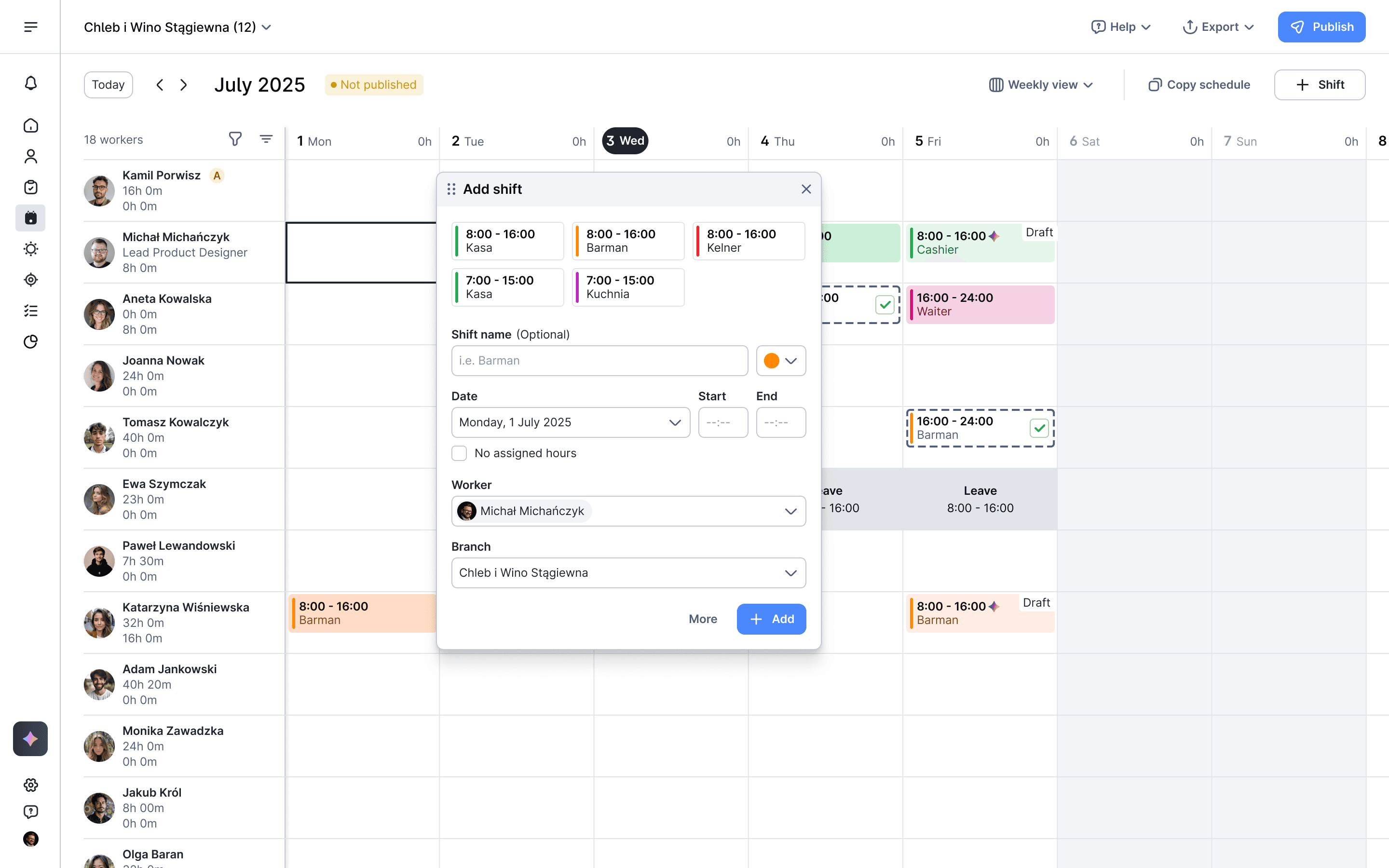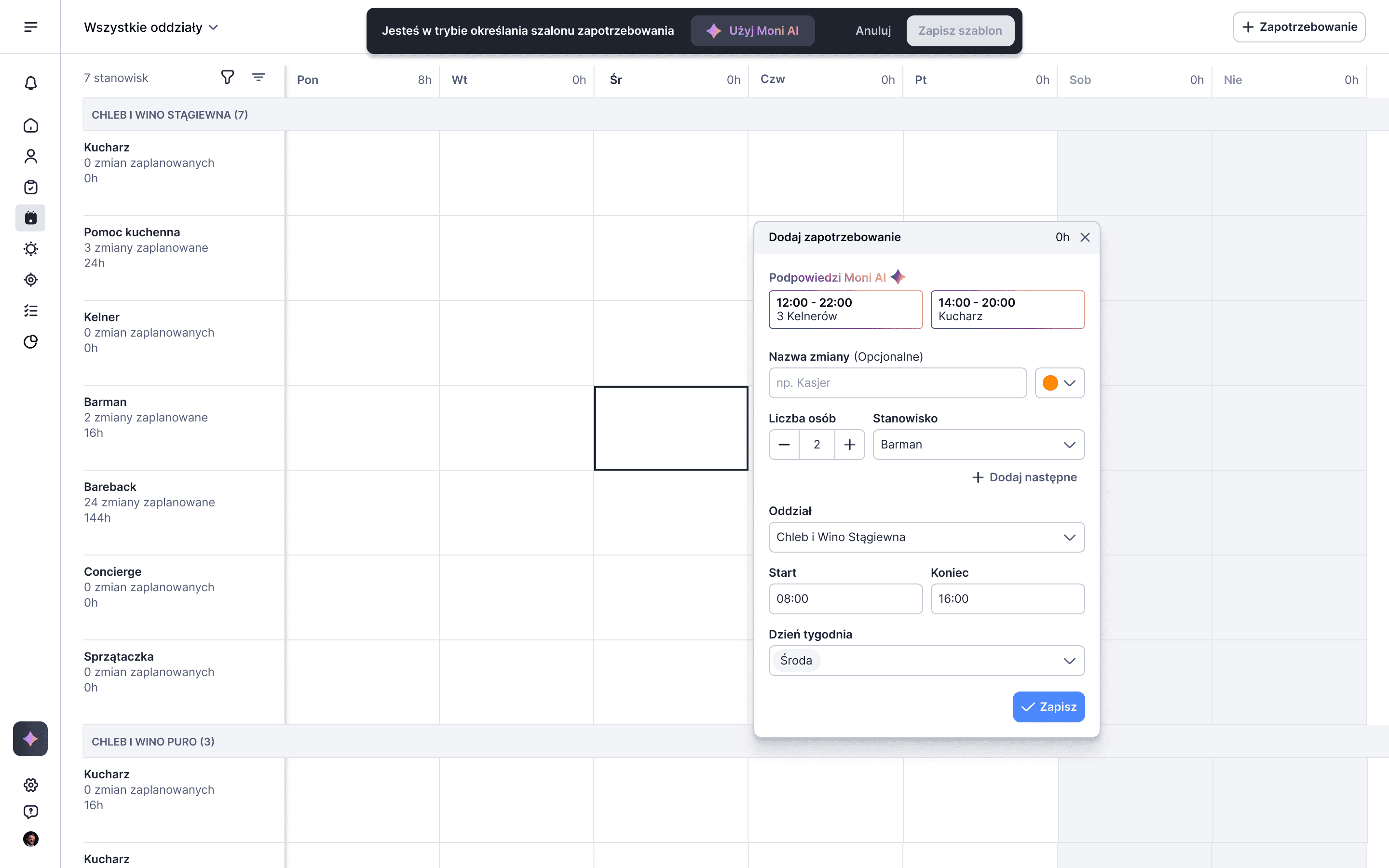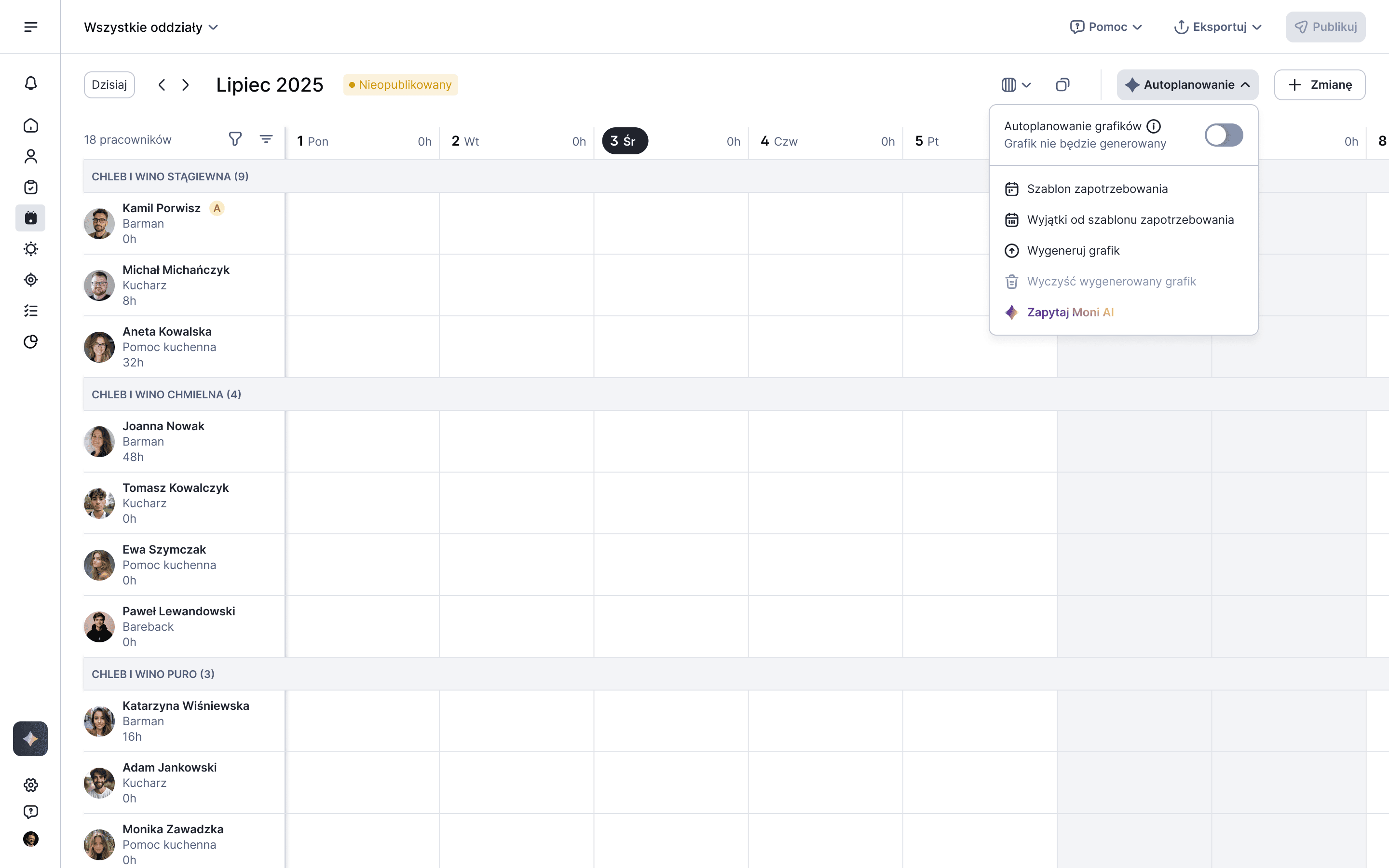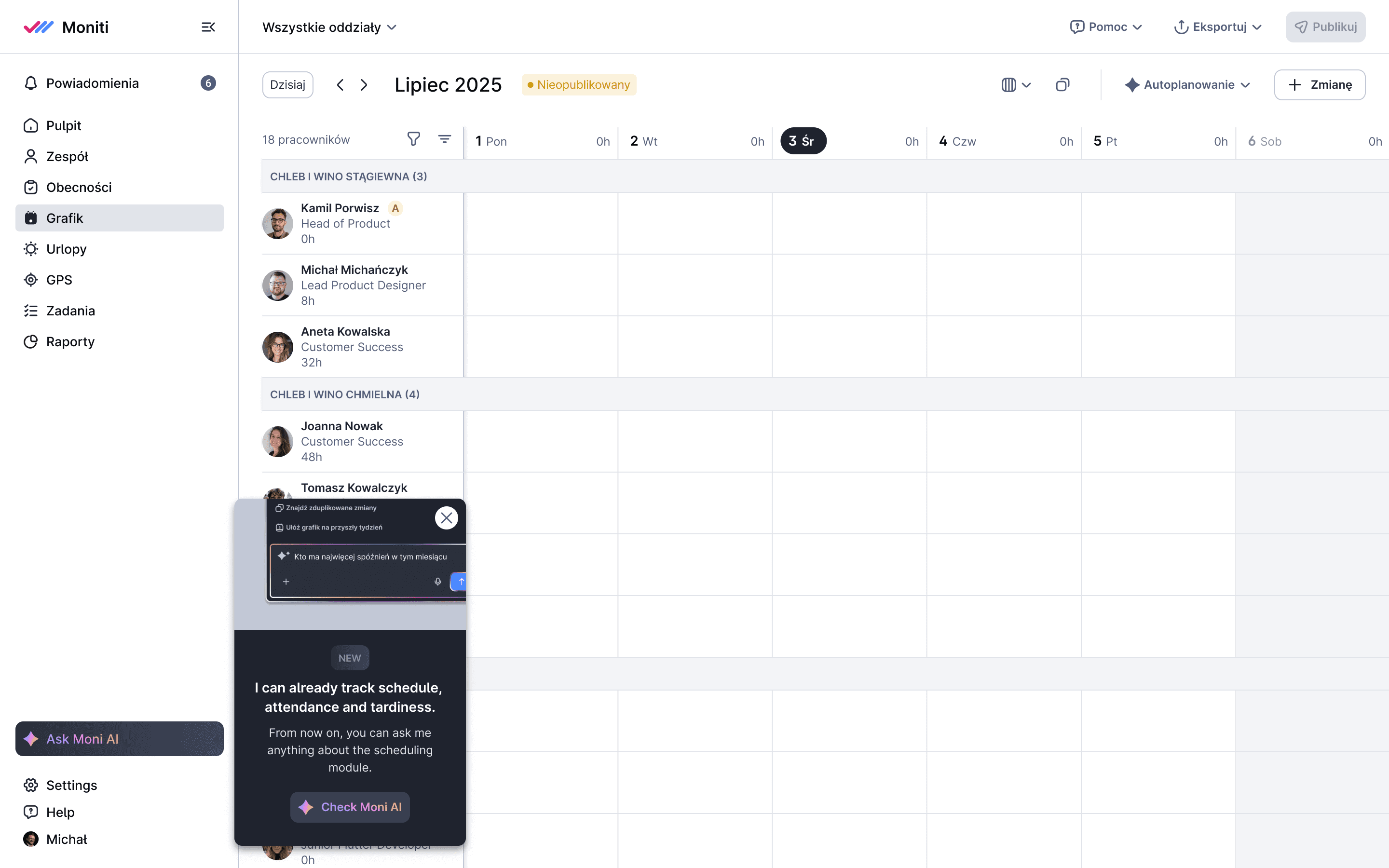 The existing Work Schedules feature was used by only ~10% of companies due to poor performance, missing key functionalities, and limited flexibility in planning shifts. As a result, Moniti was losing potential clients-especially from industries where shift planning is essential (retail, hospitality, gastronomy, services)—representing nearly half of the Polish business market.